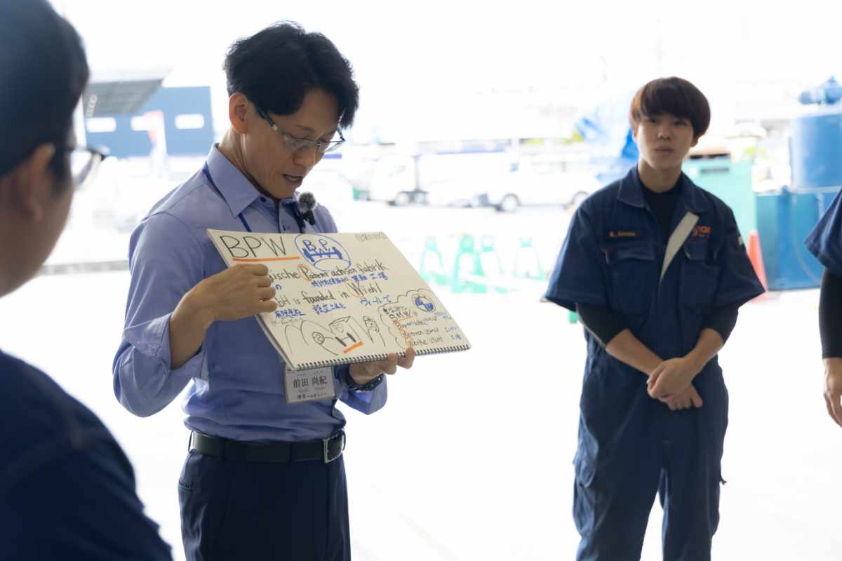 写真に写るスタッフは、技術だけでなく「人を想う気持ち」を大切にしながら、一台一台の車と真剣に向き合っています。